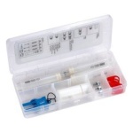 • Set bestaat uit: drie injectiespuiten, een fles voor restolie, drie slangen, drie adapters, twee afsluiters en een pistonpad.