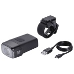 De lamp wordt geleverd met een strapbeugel. Deze past op ieder rond en aero stuur met een diameter van 22 tot 52 mm.