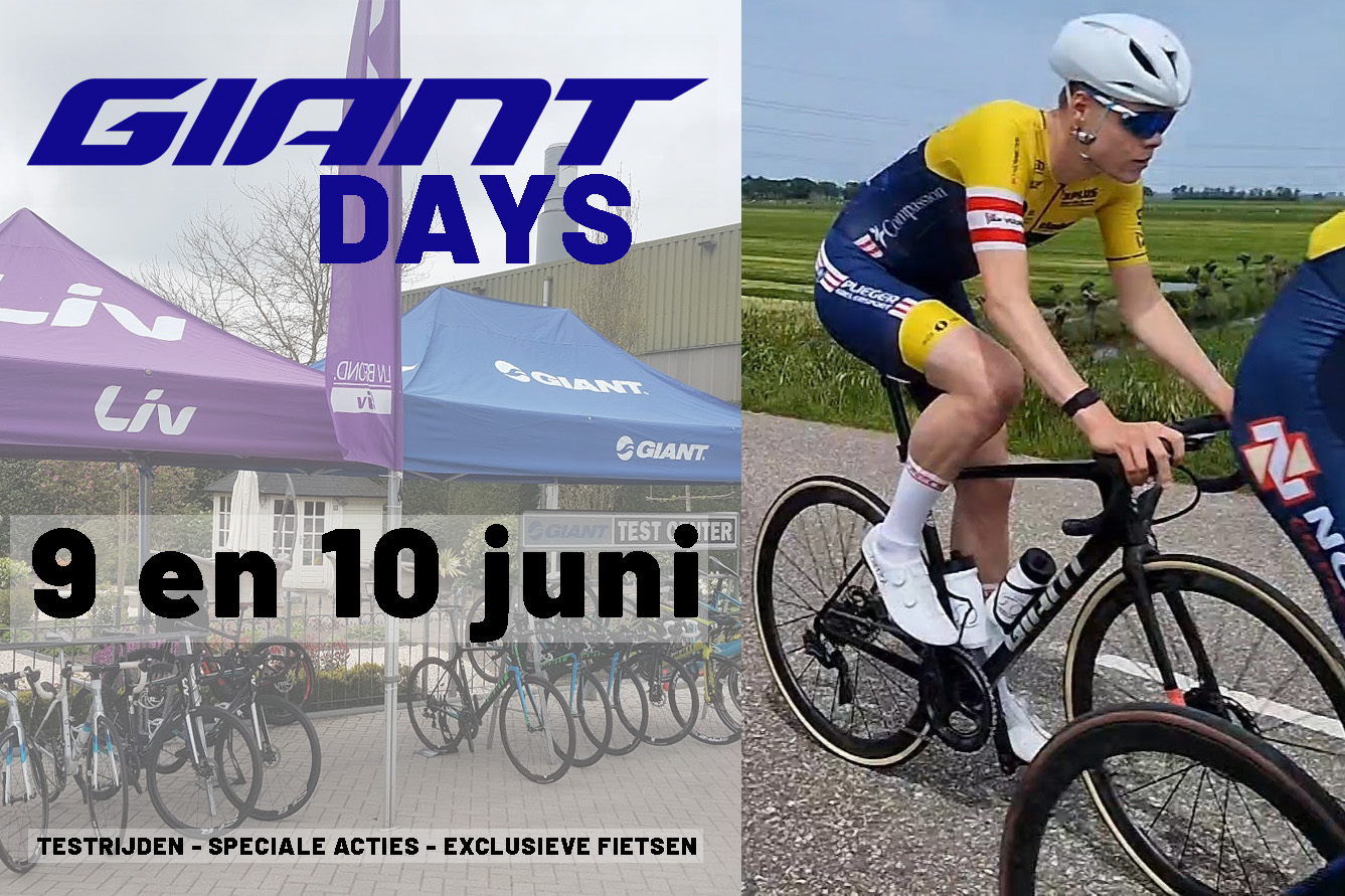Vrijdag 9 en zaterdag 10 juni hebben we een speciaal evenement:Â de Giant Days.Dit evenement geeft je een unieke kans om de nieuwste modellen van Giant en Liv te komen bekijken, evenals de gave fietsen van Cadex.