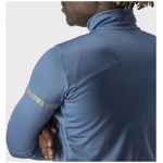 We ontwierpen dit shirt met het idee dat je het de helft van de tijd zo zult dragen en de helft van de tijd onder een vest als het frisser is. Daarom gaven we het een knappe look, hoe je het ook gebruikt. We maakten het erg functioneel met gebruikmaking van onze Warmer-stof, die dik opgeborsteld is aan de binnenkant, maar de 100% polyester samenstelling houdt in dat ze geen zweet vasthoudt. De banden op de mouwen en de verticale strook op de zak zijn reflecterend voor meer zichtbaarheid als het donker is.
