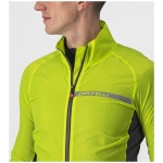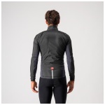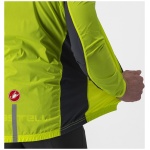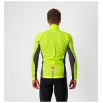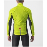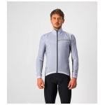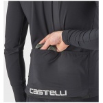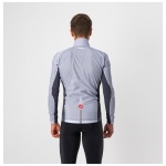 Dit is een moderne interpretatie van de windshell-jas, die je in je zak wegbergt voor een lange afdaling of die je het eerste uur van je tocht draagt tot je bent opgewarmd. Dit jack was ooit iets heel eenvoudigs — een nylon schelp — maar het gebrek aan stretch hield in dat het ruim moest worden gesneden om voor alle lichaamsvormen te passen, zowel op als naast de fiets. We hebben een complete hertekening gemaakt van wat een shell-jack moet zijn en hoe het moet worden vervaardigd. We hebben inzetstroken voorzien op de zijkanten en de mouwen in een bijzonder rekbare maar toch strakke stof, zodat we het jack een moderne, close-to-body pasvorm konden geven met het oog op aerodynamisch voordeel op elk terrein; het houdt bovendien meer warmte vast dan een jack dat vrij kan wapperen. We hebben het erg compact gehouden zodat het kan worden weggestopt in een miniem hoekje van een shirtzak. De inzetstukken in stretchstof kregen een speciale waterafstotende behandeling, wat helpt als er lichte mist is, maar dit jack is niet bedoeld als een echte regenjas.