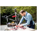 Met deze professionele fietsreparatiestandaard wordt het schoonmaken, repareren en afstellen van je fiets een eenvoudige klus. Het klemmechanisme fixeert op de zadelpen of het frame. Pas op bij carbon frames dat de druk op het carbon niet te groot wordt. Dit kan schade aan je frame of componenten veroorzaken. De standaard is in hoogte verstelbaar. Hij beschikt over een handig bakje om gereedschap en onderhoudsmiddelen in te leggen.